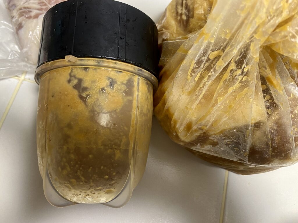 醤油、玉ねぎ半分、ニンニク1個、生姜1片をみじん切りにします。(私は今回はミキサーにかけました)