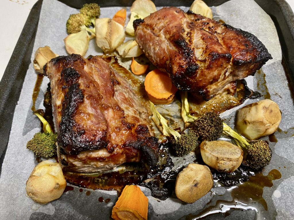 豚肩ロースの塊500g前後が、約1600円→800円になっていましたので、2つ買いました。